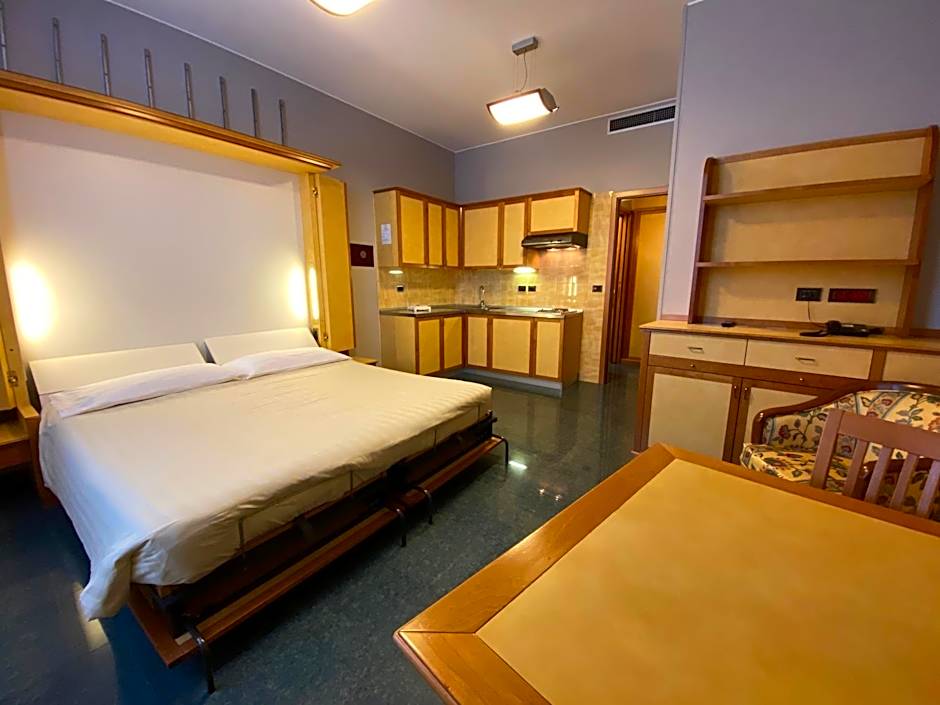 Given the name "Petite" we expecting a tiny "boutique-style" hotel with just a few rooms and very basic ammenities. We couldnt have been more wrong! Due to my husbands snoring, we booked two single room for our stay. My room (third floor) was the better laid-out of the two single rooms - but both had all the facilities that made it the perfect (and safe) place to stay. The beds were comfy, the bathroom well equipped, and the showers were powerful and hot! The breakfast room was lovely too - and the continental breakfast was plentiful and fresh - with lots of choice to suit all tastes. The Hotel was just 5 min walk to the nearest piazza and shopping - and most of the walk was under cover thanks to the arched walk ways. The Hotel also had an adjoining restaurant which was so nice that we dined there on both nights stay (an entrance from the hotel lobby gave us instant indoor access with no need to go outside)! Overall, we couldnt have asked for more given the low cost of the rooms!