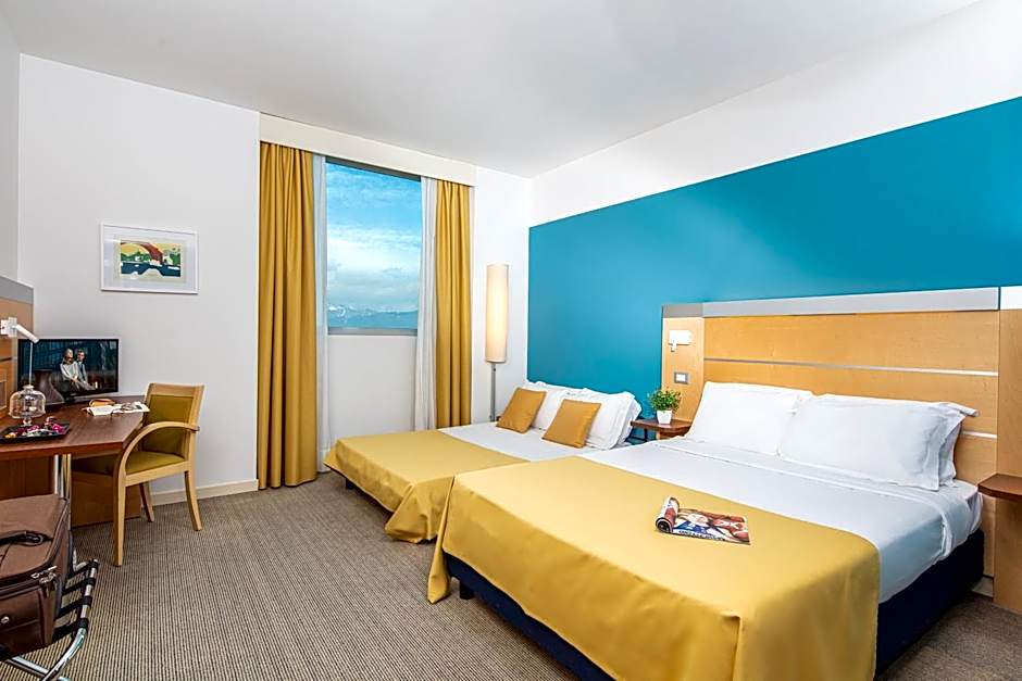 Meditur Hotel Udine Nord offers a variety of room types including Standard Twin, Standard Triple, Quadruple, Standard Double, Standard Queen, and Family rooms. The Standard Twin, Standard Double, and Standard Queen rooms can accommodate 2 adults and have bed sizes of two twin beds, one queen-size bed, and one double bed respectively. The Standard Triple and Family rooms can accommodate 3 or 4 adults and have various bed configurations including sofa beds, queen-size beds, twin beds, and bunk beds. Smoking is not allowed in any of the rooms. Room sizes range from 183 sqft to 248 sqft.