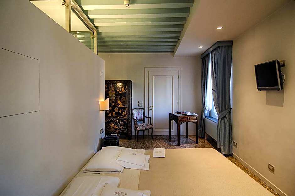 The location is amazing. We had room 202 which has a balcony on the side canal while a balcony just outside the room opens on the side canal with a view of the main canal. A river taxi stop is 3 minutes away and the train station is less than 10 minutes walk. The hotel has its own boat house where a taxi boat took us to the airport (price for family of 4 with 4 large suitcases was €140, a bit dear but unmissable) Comfortable beds Very spacious room that accommodated a sitting area with a sofa and 2 chairs Very clean Very good air conditioning Very friendly staff especially Narcissiso who was brilliant. General ambience was vintage in keeping with the city Nice garden which opens on to the main canal where meals can be had