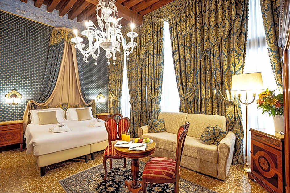 Firstly what an fantastic location in Venice! Just 2 mins from Piazza San Marco.Our room was beautiful and ornately decorated and made you feel like you were stepping back into ventian time and culture. View from window was of the canal and it was lovely to look at the gondolas going by. All of the staff were very helpful throughout our stay. We had our breakfast served in our room daily, by Raphael, and it had a great selection of options to choose from and was delicious. We would highly recommend a stay in this hotel if visiting Venice.