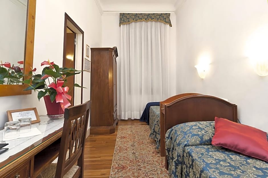 My husband and I have been traveling in Europe for over 40 years. We love private European hotels even though they are not shiny and fancy. Hotel Alla Fava was perfect for us. Our room and our bathroom were very clean. My luggage had been lost and the staff at check in asked how they could help. Also the staff at check in was friendly about the hotel and the area. There was a nice table and chairs in the hall to sit and have a coffee or a glass of wine. The window looked right out onto a canal. It was really pretty at night. We enjoyed our stay and would stay here again.