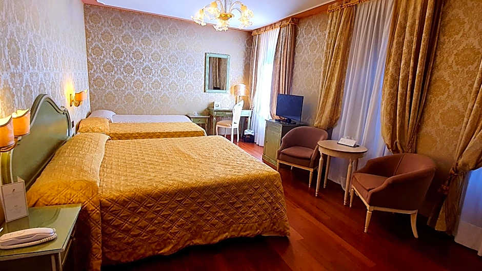 Overlooking the Grand Canal, this spacious room offers Venetian-style furnishings and a Murano glass chandelier.