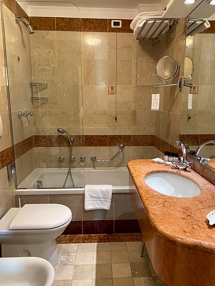 Featuring free toiletries, this quadruple room includes a private bathroom with a bath or a shower, a bidet and a hairdryer. This quadruple room is air-conditioned and has a flat-screen TV with satellite channels, a mini-bar, a coffee machine and a wardrobe. The unit has 3 beds.