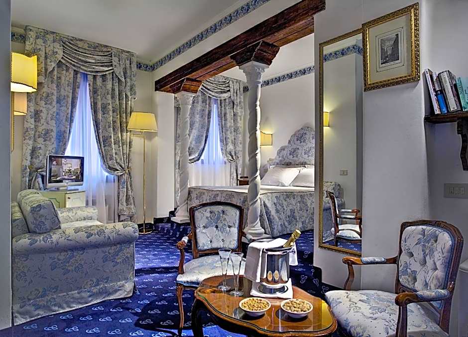 Split-level suite featuring Venetial décor, a living area with sofa and free Wi-Fi.