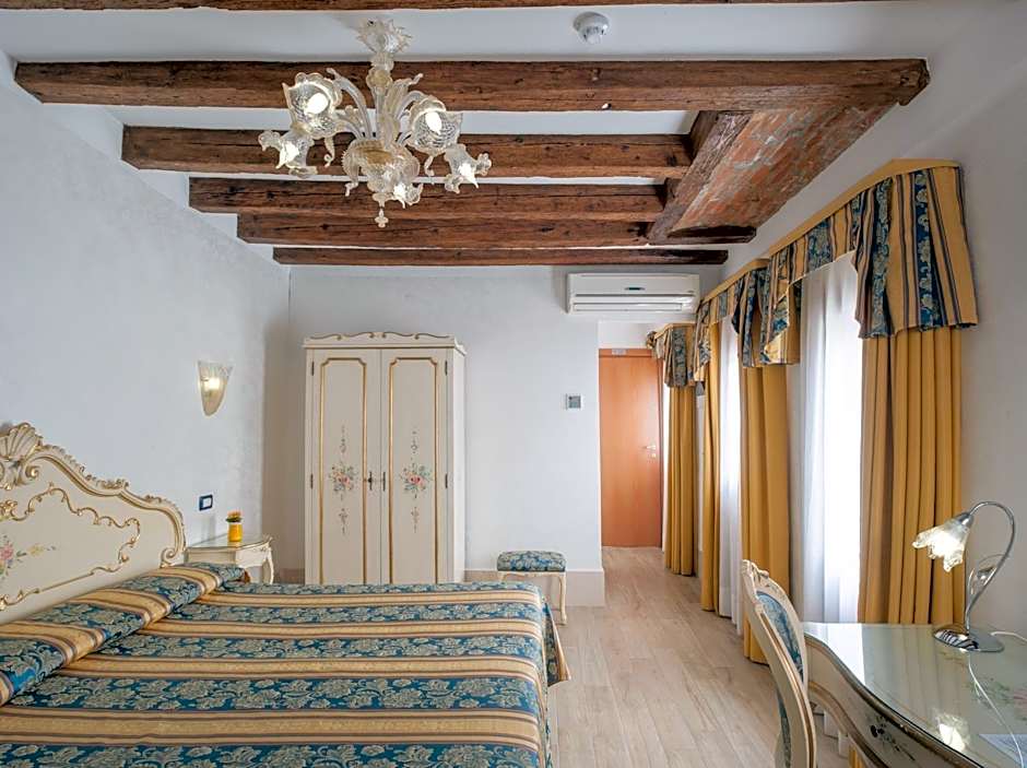 Room with attached bathroom with tiled floors and an 18th-century Venetian décor, overlooking the alley or the garden. Offers air conditioning and a flat-screen TV.