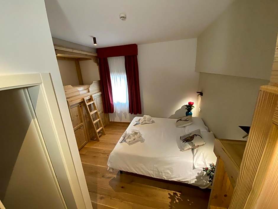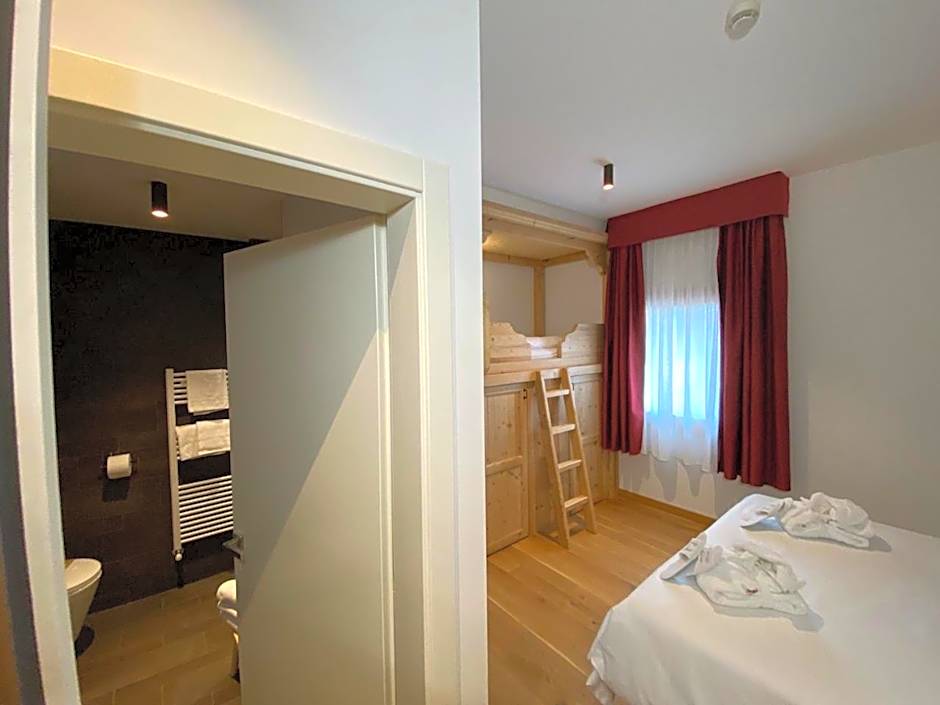 Providing free toiletries, this family room includes a private bathroom with a bath or a shower, a bidet and a hairdryer. The family room provides a flat-screen TV, a safe deposit box, parquet floors, heating as well as mountain views. The unit offers 4 beds.