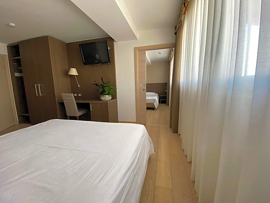 Featuring free toiletries, this quadruple room includes a private bathroom with a bath or a shower, a bidet and a hairdryer. The quadruple room features a safe deposit box, a carpeted floor, heating, as well as a flat-screen TV. The unit has 2 beds.