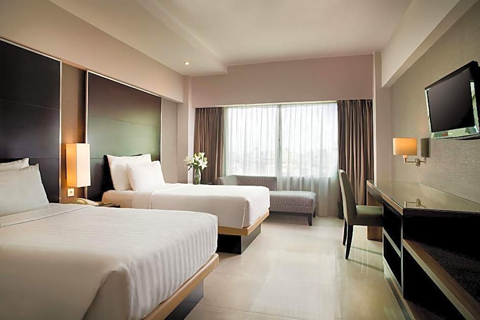 At Abbraccio di Romeo hotel, there are two types of rooms available. The Deluxe Family Suite is a larger room with a size of 484 sqft, accommodating up to 4 adults on a sofa bed and a queen size bed. Smoking is not allowed in this room. The Deluxe Queen Room is a slightly smaller room at 377 sqft, accommodating up to 3 adults on a double bed and a sofa bed. Smoking is also not allowed in this room.