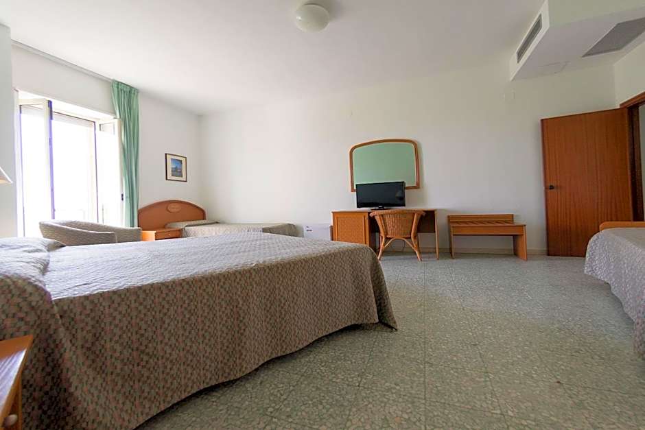 The quadruple room features air conditioning, a private entrance, a balcony with sea views as well as a private bathroom boasting a shower. The unit has 3 beds.