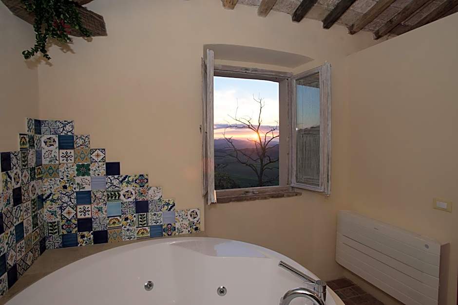 Unwind in one of the elegantly appointed rooms at B&B La Pecora Nera, offering a range of accommodation options to suit every traveler's needs. From the cozy Junior Suite to the luxurious Queen Bed or Deluxe Suite, each room features a jetted tub for a touch of indulgence during your stay. Whether you're seeking a romantic escape or a peaceful retreat, these well-appointed rooms ensure a comfortable and unforgettable experience amidst the beauty of the Tuscan countryside. Feel pampered and rejuvenated in your private haven at B&B La Pecora Nera, where relaxation and luxury harmoniously come together.