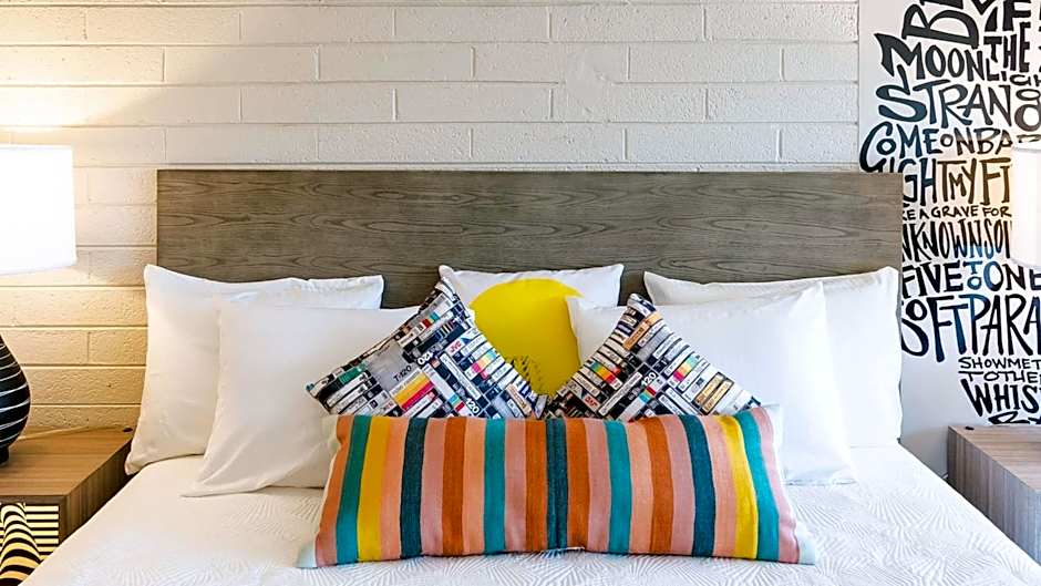 Really hip and comfy hotel in downtown Phoenix, with a lovely patio/garden area lined with a bar and food truck ,as well as the restaurant Chilte (seemingly very popular, though we didn't eat there). About a 5-10 minute walk to some cafes and restaurants, though you may prefer to drive given the ample parking and not-so-nice neighborhood for walking. Excellent coffee in the morning.