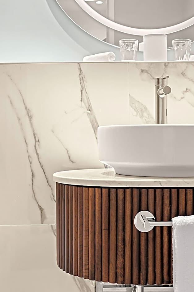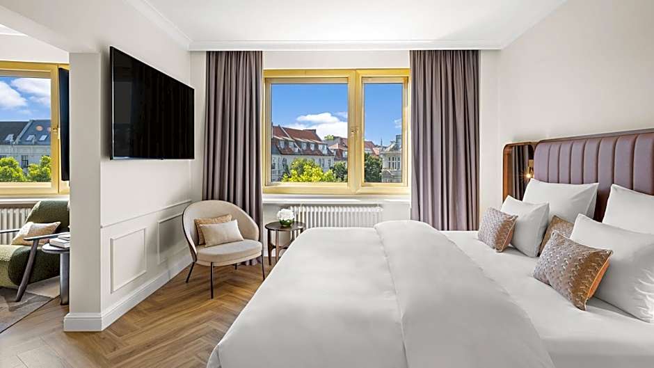 都心までの距離は約3.8マイルで、ベルリン散策のスタイリッシュな拠点になります。客室タイプはクラシックルームやデラックスルーム、クーダムスイート(Kudamm Suite)、ベルリンスイート(Berlin Suite)、プレジデンシャルスイートなど多彩で、ジュニアスイートやファミリー・スイートなど柔軟なレイアウトの選択肢もあります。一部のスイートには朝食が料金に含まれ、特定の客室には大通りを望むバルコニーがあり、夕日を楽しめます。