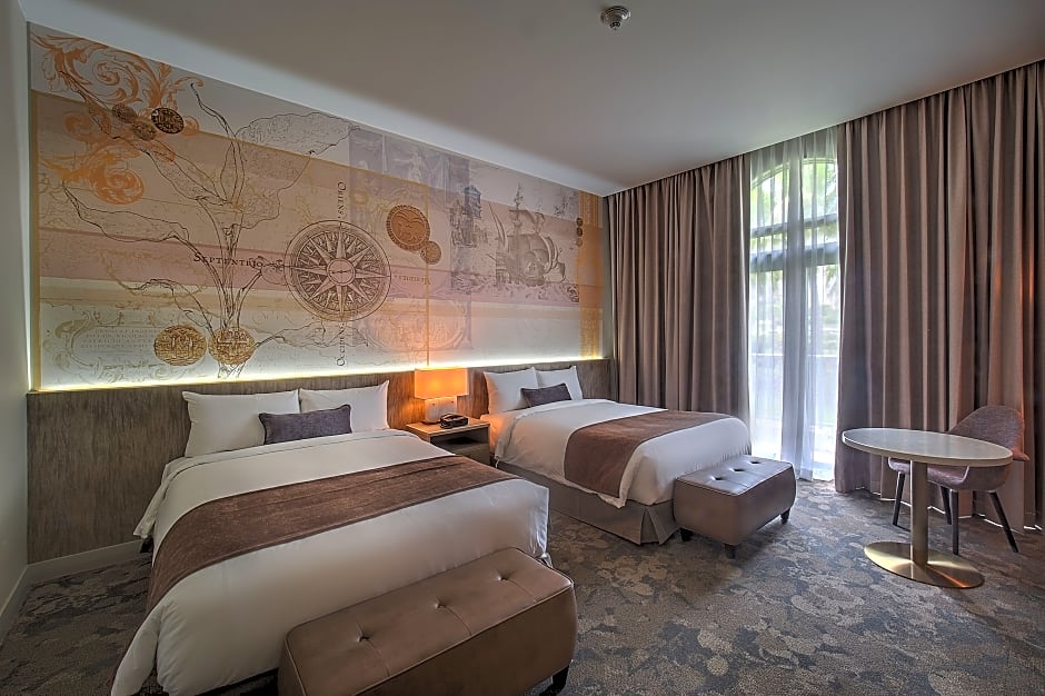 プールでのんびり過ごしたり、館内のイタリアンレストラン「Eataliano」で美味しい食事を満喫した後は、ゆったりとした設備の整った客室でくつろげます。リゾートでは、専用ラウンジの利用が可能な豪華なエグゼクティブスイートから、快適なラグジュアリーダブルまたはツインルームまで、さまざまなタイプの客室を提供しています。すべての客室は禁煙のため、清潔で快適にお過ごしいただけます。各客室は大人2名と子ども2名に対応できるよう設計されており、家族連れやカップルにとって安心して滞在できる環境です。