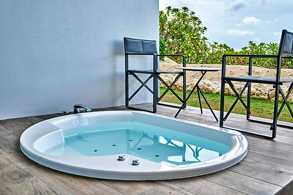 客室はジャグジースイート、オーシャンビュー/オーシャンフロントのタイプ、デラックスツインなど幅広く、少し広めのファミリースイートも用意されています。客室の一部にはバルコニーや専用ガーデンがあり、部屋から屋外を楽しめます。注意:支払いは現金のみ対応となります。