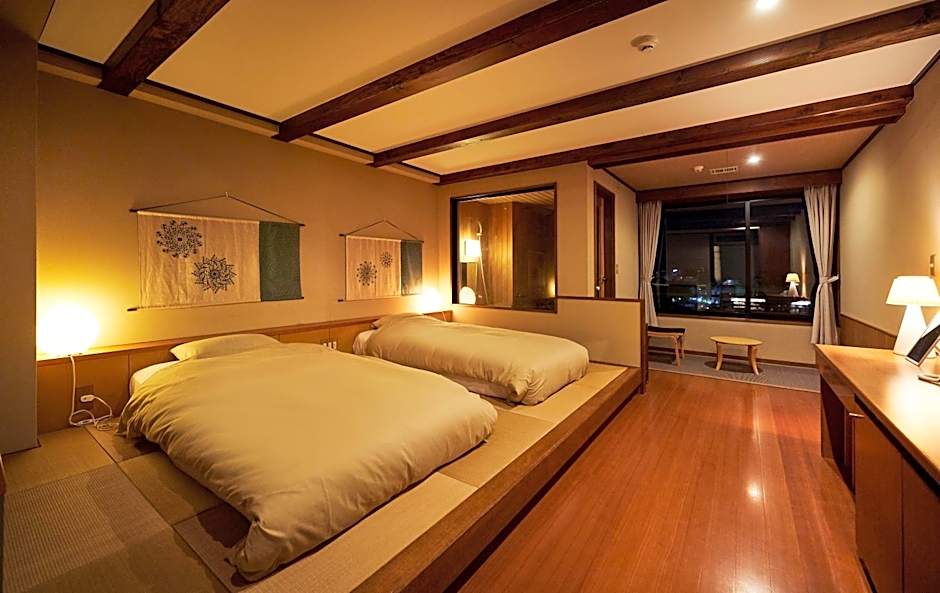 客室は標準的なツインや和室から、デラックスツイン、専用バスルーム付きトリプルルーム、和洋ファミリールーム、スイートなど幅広く揃っています。最大で大人10名・子ども6名まで宿泊可能な構成もあり、カップル、家族、大人数のグループに対応しています。
