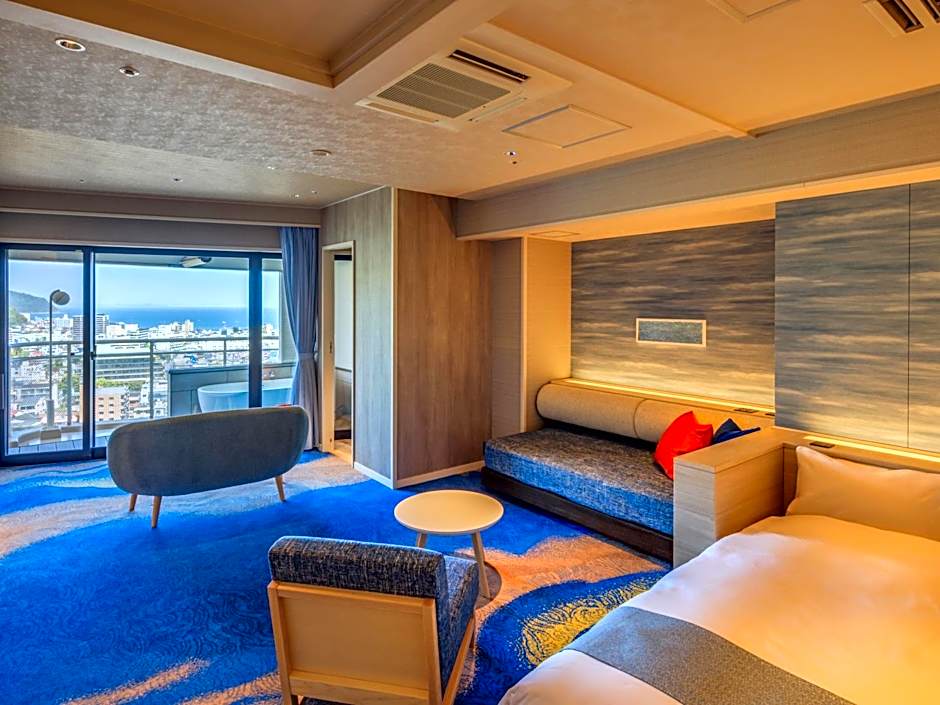 伊東での一日を終えた後、リラックスと発見が遊び心を交えてバランスよく楽しめます。眺めの良い季節限定の屋外プールは、無料の温泉入浴と相性抜群で心地よいひとときを提供します。庭園や遊び場は若い旅行者にちょっとした楽しさを加え、テラスは日当たりの良い休憩スポットを提供します。24時間対応のフロントと、無料の生演奏による賑やかな雰囲気が夕方を通して歓迎のムードを作り出します。