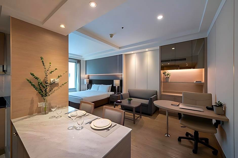 屋外のソルトウォータープールではくつろぎのひとときが待っています。大人専用のリトリートで、バンコク観光の一日を過ごした後のリラックスに最適です。館内ダイニングはPanorama Cuisine(パノラマ・キュイジーヌ)で、伝統的およびモダンな雰囲気のいずれでもタイ料理を提供し、市内の喧騒から離れて風味豊かなひと休みを楽しめます。