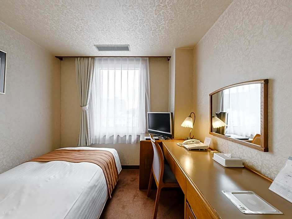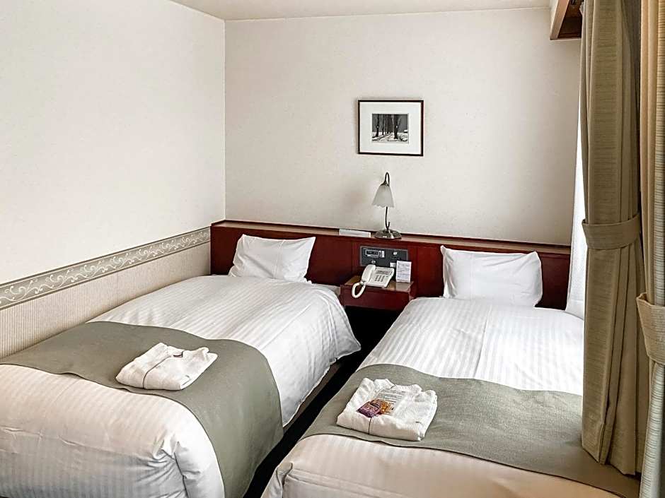 Hotel was antique chic and our twin room had plenty of space for us and our 2 large suitcases. As it didn't have an onsen, the hotel provided 2 X bath salts as a substitute which was a nice touch and they smelt divine in the bath. The bed was on the softer side by Japanese standards (which is still quite firm but I appreciated the extra give in the mattress). Pillow was a solid beanbag type thing and it was amazing. Microwave on level 3 was appreciated although there wasn't any English signage for it (it was in the laundry area with the vending machines - which was listed on signage). The hotel about a 12 minute walk from the JR station which was a bit of a trek in the snow with heavy luggage but manageable - I'd advise timing it with the bus if you can. It is well placed near the bus station and all the restaurants which was, in our opinion, a good trade off. We also liked the type of green tea provided in the room.