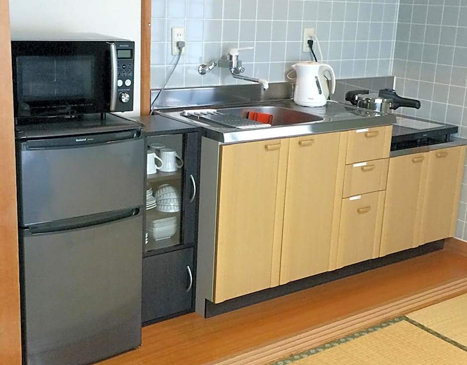 The family room provides air conditioning, tatami, as well as a shared bathroom featuring a bidet and a hairdryer. Meals can be prepared in the kitchenette, which is equipped with a refrigerator, kitchenware, a microwave and an electric kettle. The family room features a wardrobe, a safe deposit box, yukata, heating, as well as a flat-screen TV. The unit offers 3 futons.