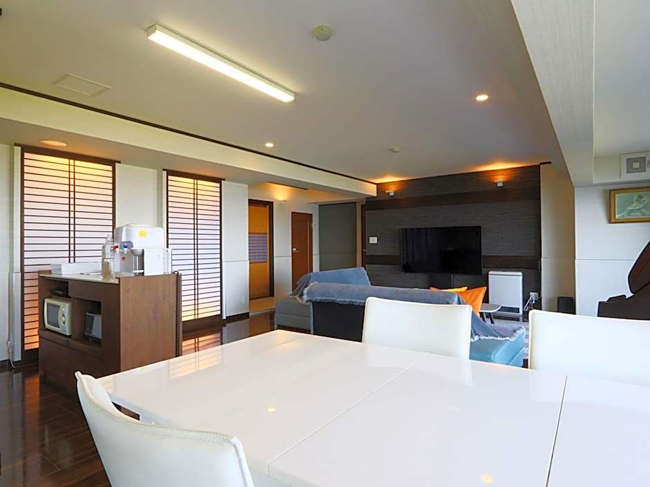 This spacious suite includes 1 living room, 1 separate bedroom and 1 bathroom with a bath and free toiletries. Meals can be prepared in the well-fitted kitchen, which has a stovetop, a refrigerator, kitchenware and an oven. The air-conditioned suite offers a flat-screen TV, tatami, a coffee machine, a dining area as well as sea views. The unit has 1 bed and 4 futons.