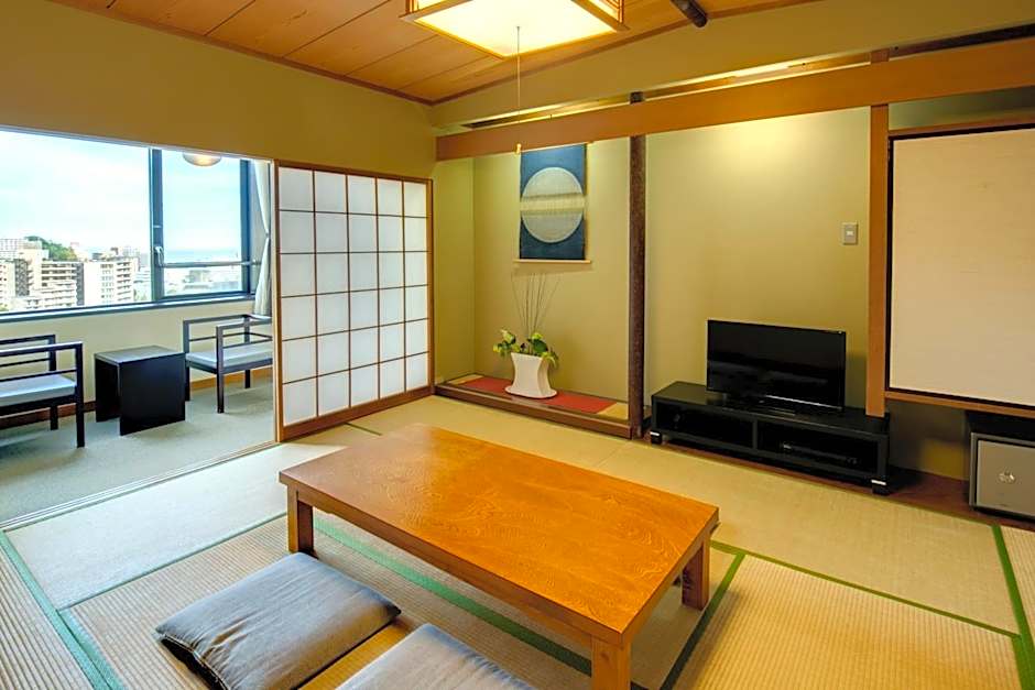 Beautiful scenery at the window. Looking out at the seas at Atami. Breakfast and dinner provided by the hotel were sumptuous and generous. I felt hotel is cozy and exclusive. Staff were kind.