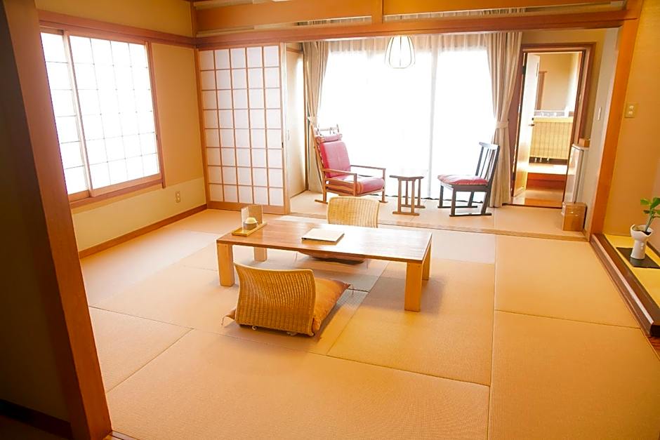 The triple room features air conditioning, tatami, as well as a shared bathroom boasting a bidet and a hairdryer. The triple room offers a safe deposit box, yukata, heating and a flat-screen TV. The unit has 3 futons.