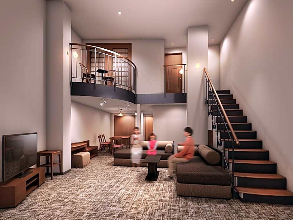 The spacious quadruple room provides air conditioning, tatami, as well as a private bathroom featuring a bath and a shower. The quadruple room offers a seating area, a dining area, a wardrobe, an electric kettle and a flat-screen TV. The unit offers 2 beds and 3 futons.