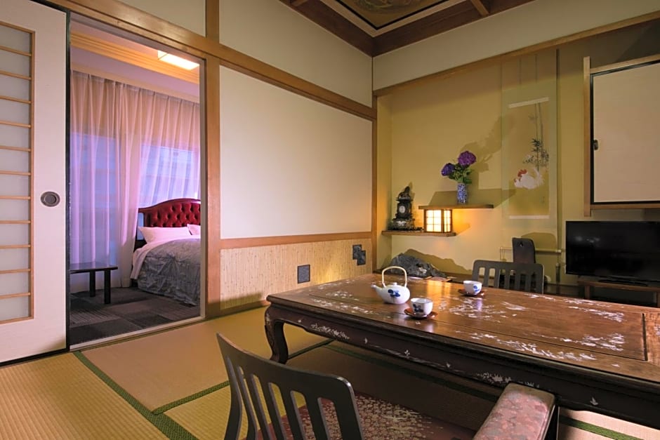 The family room provides air conditioning, tatami, as well as a shared bathroom featuring a bidet and slippers. The family room offers a tea and coffee maker, a safe deposit box, heating and a flat-screen TV. The unit offers 1 bed and 2 futons.