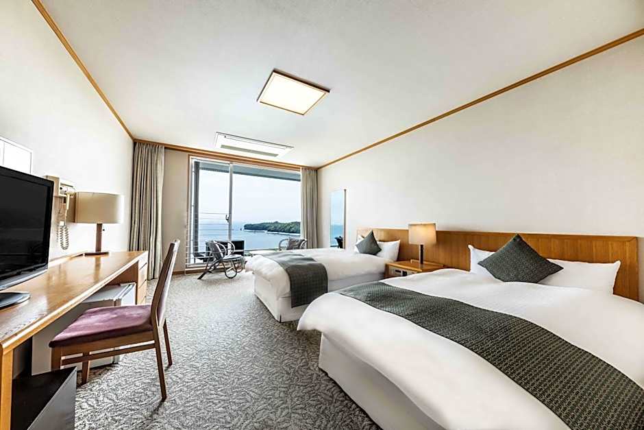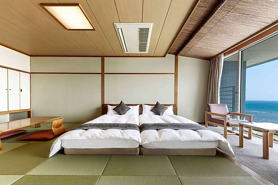 Featuring free toiletries, this quadruple room includes a shared bathroom with a bidet, a hairdryer and slippers. The air-conditioned quadruple room features a flat-screen TV with satellite channels, tatami, a tea and coffee maker, a wardrobe as well as sea views. The unit has 2 beds and 2 futons.