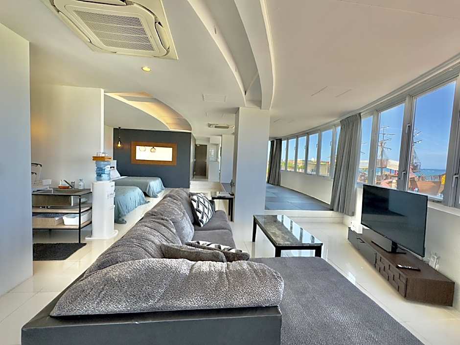 Boasting a private entrance, this air-conditioned apartment features 1 living room, 1 separate bedroom and 1 bathroom with a bath and a shower. In the fully equipped kitchen, guests will find a stovetop, a refrigerator, kitchenware and a microwave. The spacious apartment features a flat-screen TV with streaming services, a washing machine, tatami, executive lounge access as well as sea views. The unit has 2 beds and 4 futons.