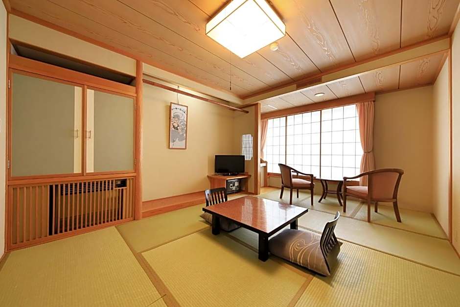 The air-conditioned family room offers a flat-screen TV, tatami, a safe deposit box, a carpeted floor as well as lake views. The unit has 2 beds and 2 futons.