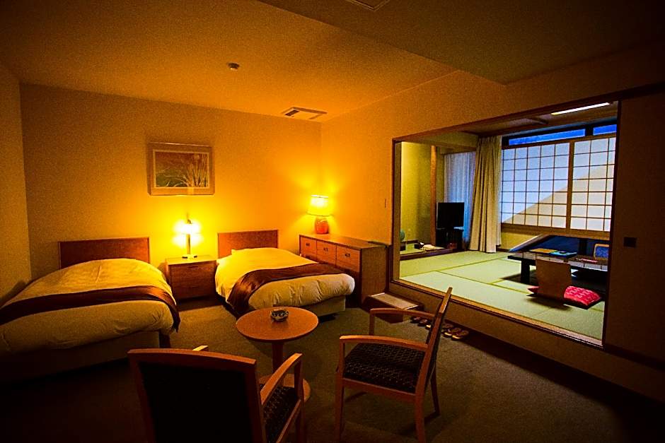 Offering free toiletries, this family room includes a private bathroom with a bath, a shower and a bidet. The family room offers air conditioning, tatami, yukata, heating and a flat-screen TV. The unit has 2 beds and 3 futons.