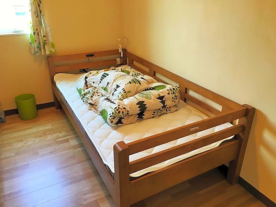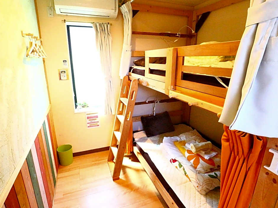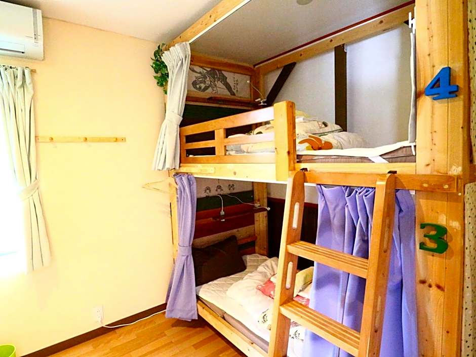 This Hostel is located walking distance to Mt. Fuji train station and lots of little restaurants. The three of us stayed in the private 4 bed bunk bed room. Each bed had a little reading lamp, outlet to plug into and privacy curtains. The mattress was very comfortable and the blankets were nice and warm. Our room also had an air conditioner which was helpful for the humid rainy day we had. The public shared bathroom, shower and sinks were very clean and stocked with a blow dryer, shampoo, conditioner, body wash and tooth brushes! Our host was a quiet person but he was very kind and was always around taking care of things. He also baked fresh bread every day which was amazingly delicious and made the whole building smell good. We met some great people while we were there having dinner in the common area. Everyone was so friendly and excited to share tips on where they had traveled to. Highly recommend this hostel and especially the bread!