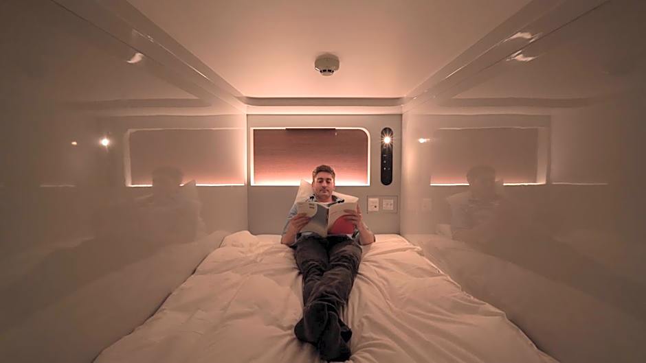 Each capsule room at this accommodations features a reading lamp, USB socket and power outlet. Rooms are separated by male only and female only floors. The capsule features a bed 47 in wide.
