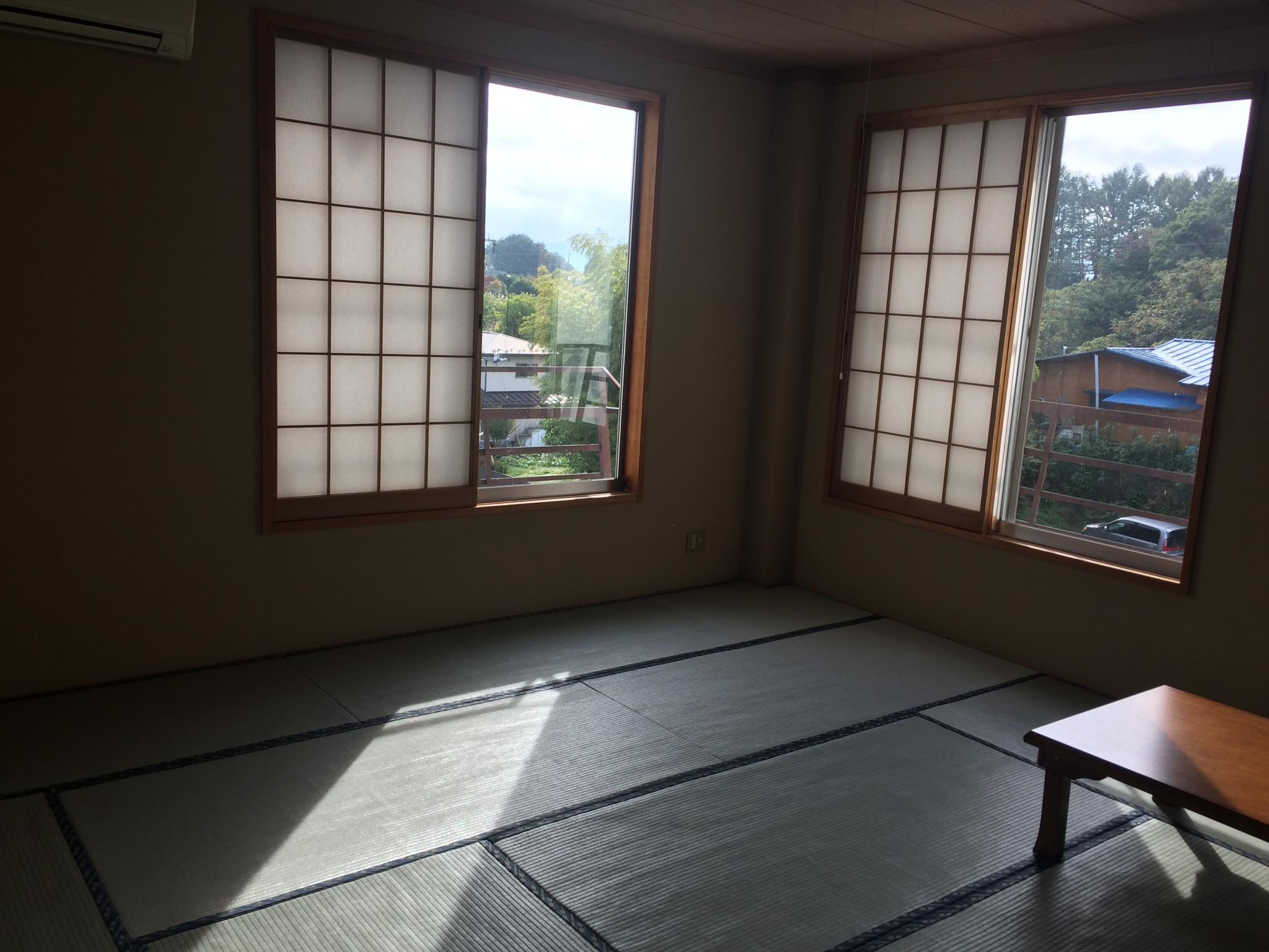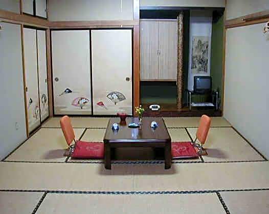 Air-conditioned room furnished with a TV and a low table with floor cushions. Bathrooms and toilets are shared. Rooms do not have a Mt. Fuji view.