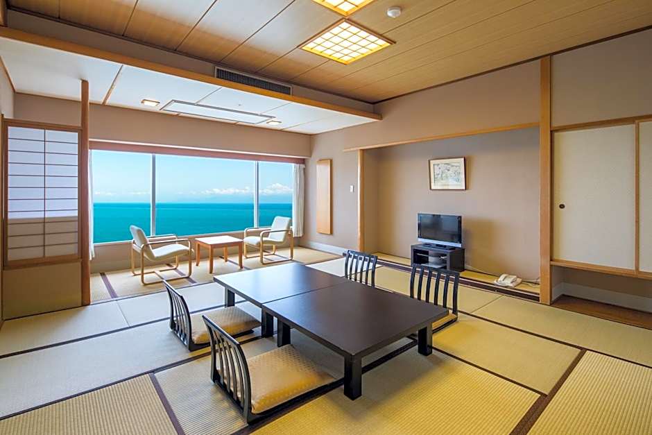 Has outdoor onsen facing Suruga Bay. Room facing Suruga Bay