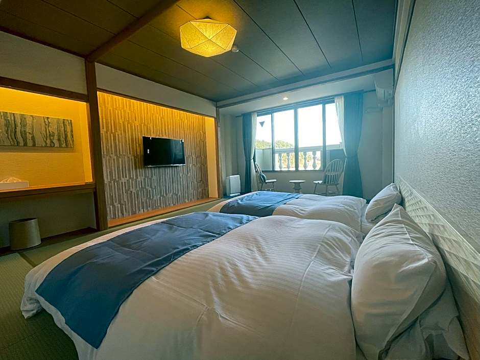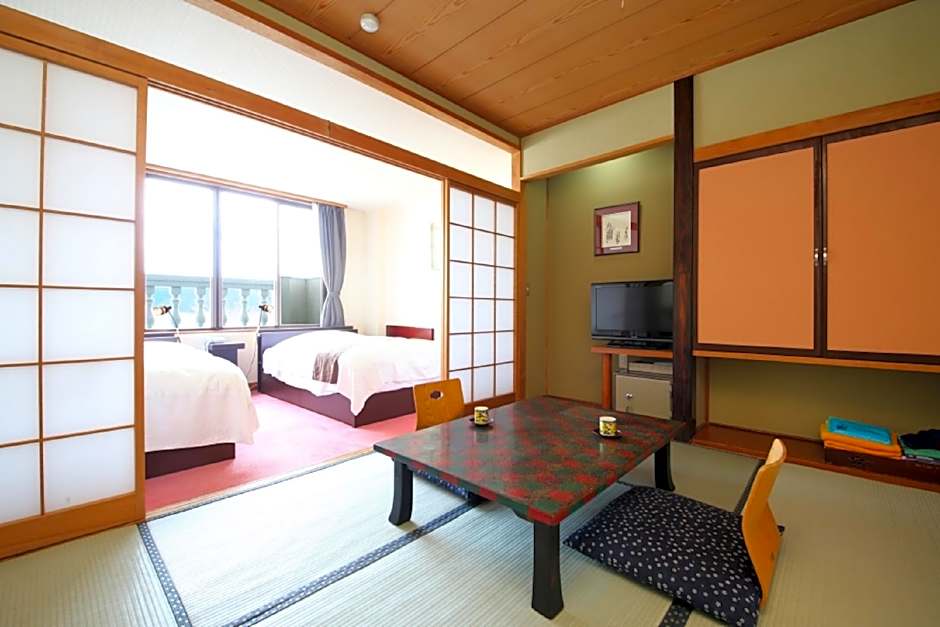 The triple room includes a private bathroom, well-fitted with a bath, a shower, a bidet, a hairdryer and slippers. The air-conditioned triple room features a flat-screen TV, tatami, a tea and coffee maker, a safe deposit box as well as lake views. The unit has 2 beds and 1 futon.
