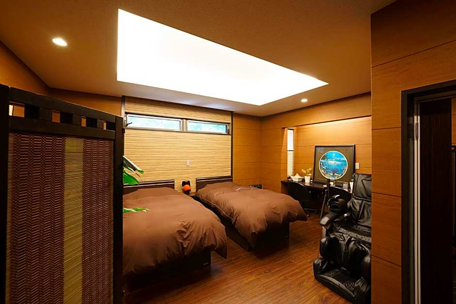 The spacious twin room provides air conditioning, tatami, as well as a private bathroom featuring a shower and a bidet. The unit offers 6 futons.