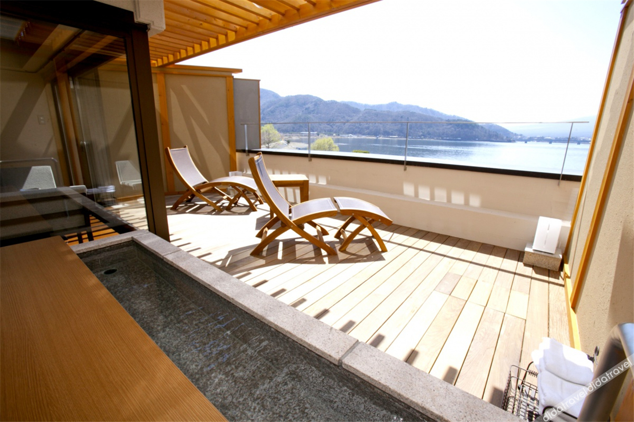 Great view of Mt. Fuji. The room comes with breakfast (different bento for each day and buffet) and dinner. Comfortable futon. Parking spaces available, and bus stop literally in front of the hotel.