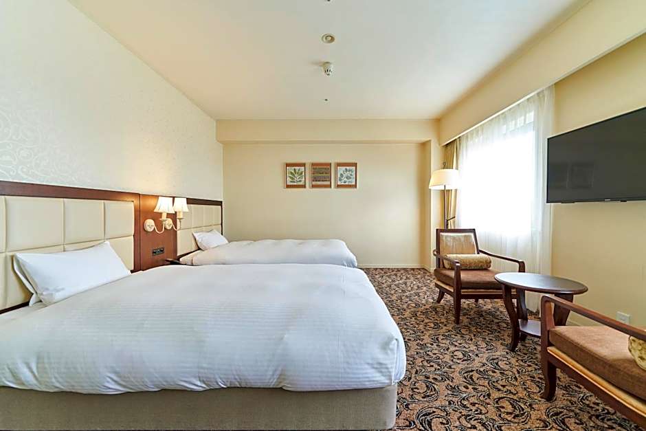 The spacious twin room features air conditioning, an electric kettle, a carpeted floor, pajamas, as well as a flat-screen TV with streaming services. The unit has 2 beds.