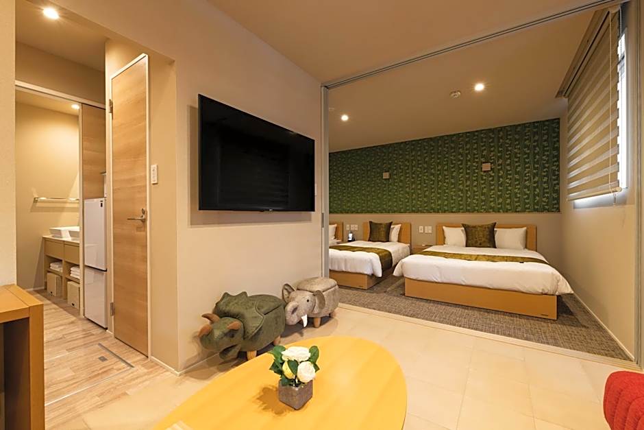 This family room's special feature is the hot tub. The spacious family room provides air conditioning, a washing machine, as well as a private bathroom featuring a bath and a shower. In the well-fitted kitchenette, guests will find a stovetop, a refrigerator, kitchenware and a microwave. The family room features tatami, a private entrance, an electric kettle, heating and a flat-screen TV. The unit offers 4 beds and 2 futons.