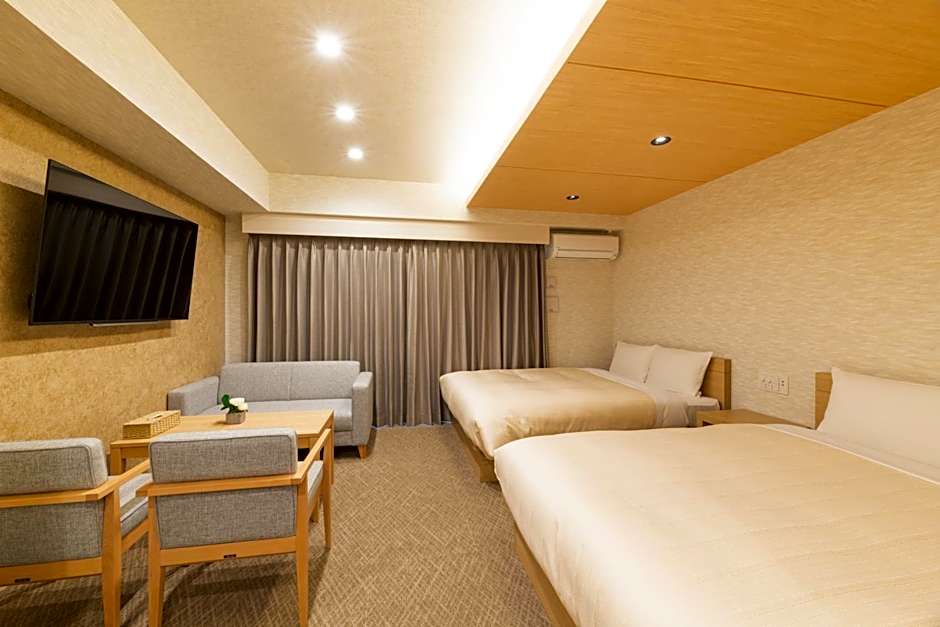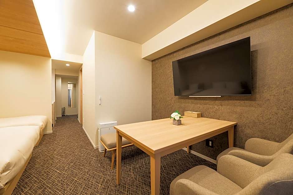 The spacious twin room provides air conditioning, a washing machine, as well as a private bathroom featuring a bath and a shower. Meals can be prepared in the well-fitted kitchen, which is equipped with a stovetop, a refrigerator, kitchenware and a microwave. A seating area with a flat-screen TV, tatami and a balcony are provided in this twin room. The unit offers 2 beds.