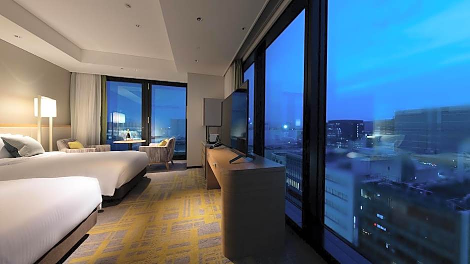 Guests can unwind with a heated outdoor rooftop pool that welcomes guests year-round, perched above the city for a bright, breezy dip. The on-site spa includes a hot spring bath, with steam room and sauna tucked in for a soothing unwind after a day of exploring. Dining options keep things deliciously easy, with Le Ciel Bleu serving modern French and European cuisine in a modern, romantic setting, while TTT Café offers European flavors for a lighter bite.