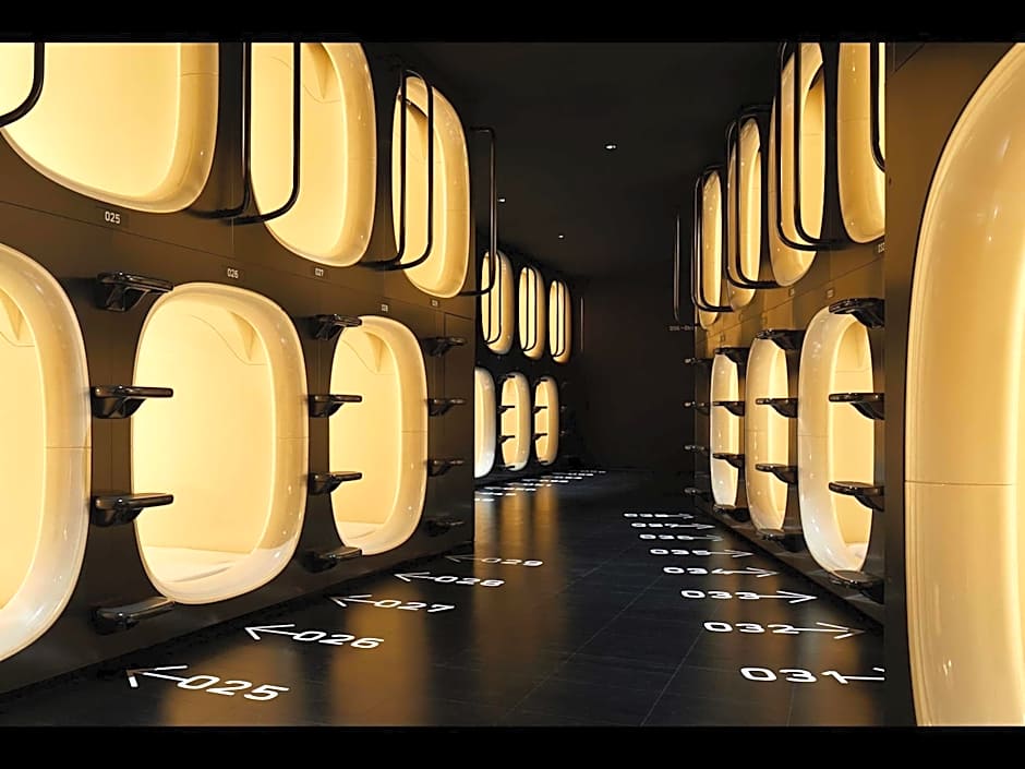 Room options span Capsule rooms (Male Only, Female Only, and Day Usage) and Dormitory rooms (Male Only, Female Only), plus Run Of House; some Capsule Rooms feature two Twin beds. All accommodations are non-smoking, with Capsule sizes around 22 square feet, and configurations vary in how many adults (and sometimes children) they can accommodate.