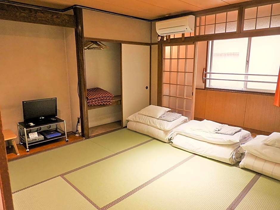 The family room features air conditioning, tatami, as well as a shared bathroom boasting a hairdryer and slippers. This family room provides yukata and a flat-screen TV. The unit has 2 futons.