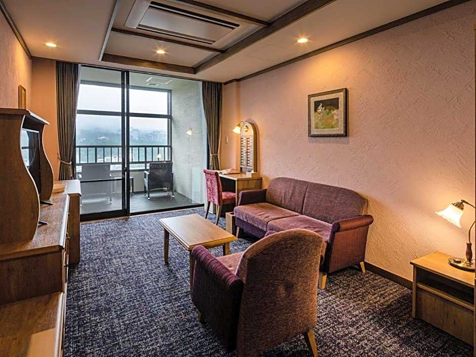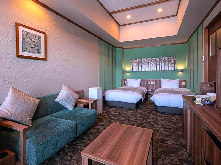 Guests will have a special experience as this twin room offers a hot tub and a private open-air bath. The spacious twin room features air conditioning, a mini-bar, a balcony with mountain views as well as a private bathroom boasting a bath. The unit has 3 beds.