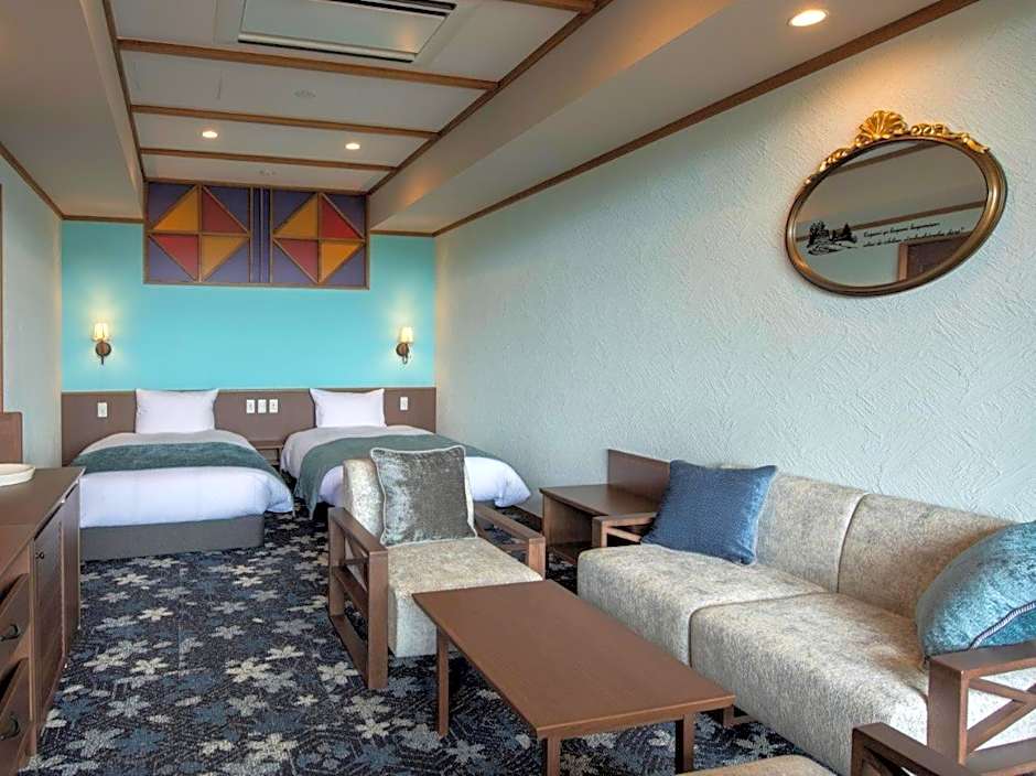 La Vista Kusatsu Hills offers a variety of room types, including Quadruple Rooms, Twin Rooms, Deluxe Twin Rooms, and Hollywood Twin Rooms. All rooms have open-air baths and do not allow smoking. The room sizes range from 312 sqft to 506 sqft. The rooms can accommodate either 2 or 4 adults, and the bed configuration is either 2 Twin beds or 4 Twin beds.