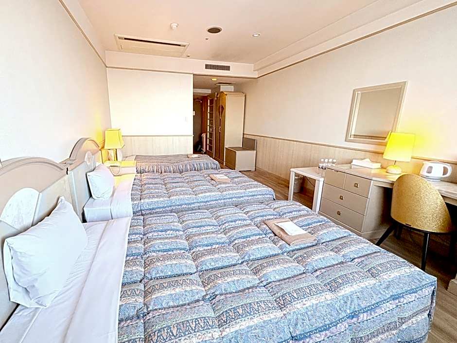 This twin room features a hot tub. The twin room includes a private bathroom, well-fitted with a bath, a shower, a bidet, a hairdryer and slippers. The twin room features a wardrobe, a safe deposit box, an electric kettle, yukata, as well as a flat-screen TV. The unit has 2 beds.