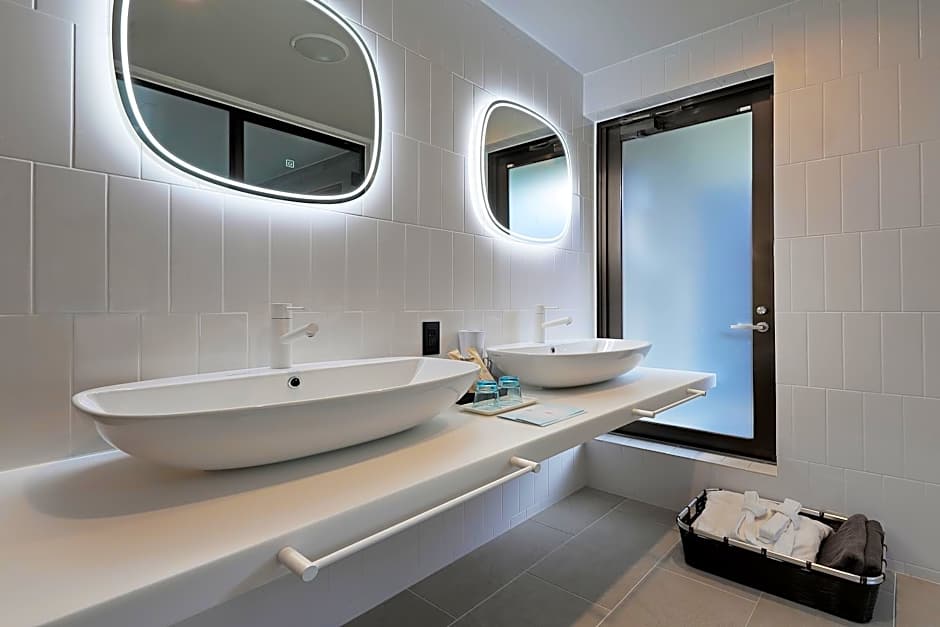 Practical comforts help travelers make the most of the backdrop: a complimentary shuttle service and free private parking simplify getting around, while free Wifi keeps plans on track. A free hot spring bath and air conditioning come standard, and the mountain-view ambience, non-smoking rooms, and a handy kitchenette add everyday ease. Bathrooms feature bathtubs, bidets, and free toiletries, with a sauna available for an extra charge. Elevators connect to upper floors for convenient access.