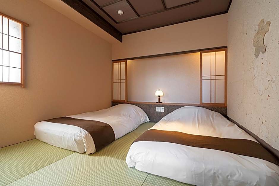 Guests will have a special experience as the quadruple room offers a private open-air bath. This quadruple room is air-conditioned and features a private bathroom, tatami floors, a mini-bar and a terrace. The unit offers 2 beds and 2 futons.